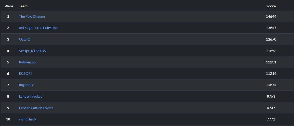 Great news. We achieved a fantastic result at Null CTF 2025! Our team (vianu_hack) – Victor-Andrei Trandafir, Robert-Andrei Harabagiu, Tudor Furtuna, Alexandru Hossu and myself, Matei Ferșeta – secured a spot in the Top 10.