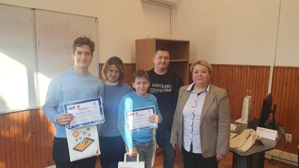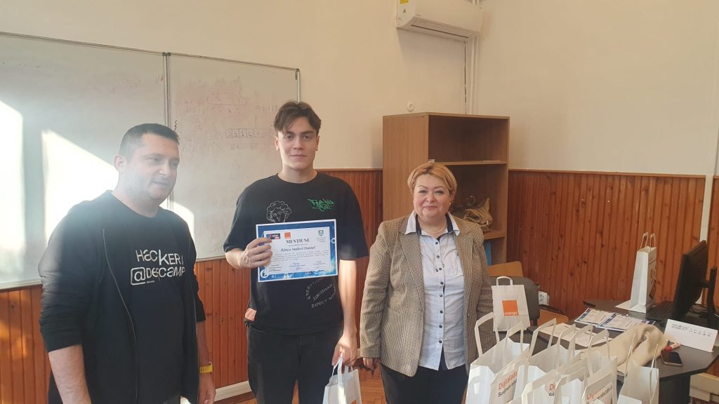 Miss Gabriela Boca, the IT teacher that organized this competition, handles me the diploma. Also, I’ve received some nice prizes from Orange Romania (thank you).
