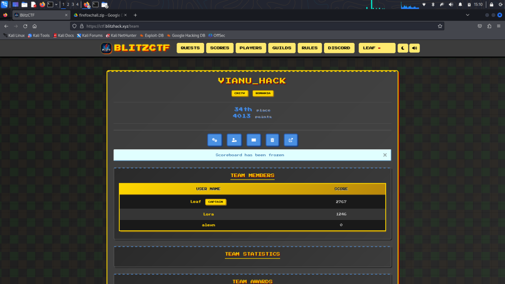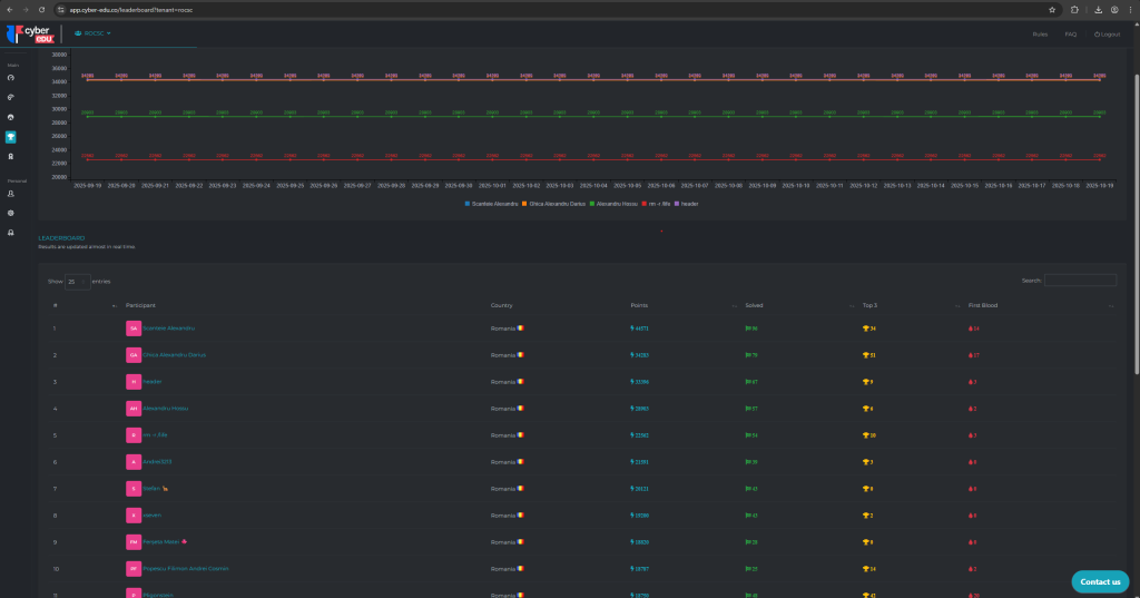 14th place Matei Ferseta– Student at 11th grade, at Colegiul National de Informatica Tudor Vianu – President of Vianu Cybersecurity Club – Trainer at Atlantykron – Volunteer at Astrofest, Hallo Fest, Sci-Fi Fest, Poli Fest – Pseudo-Owner of Bacon, my cat. More about me here. mapleleaf.ro
