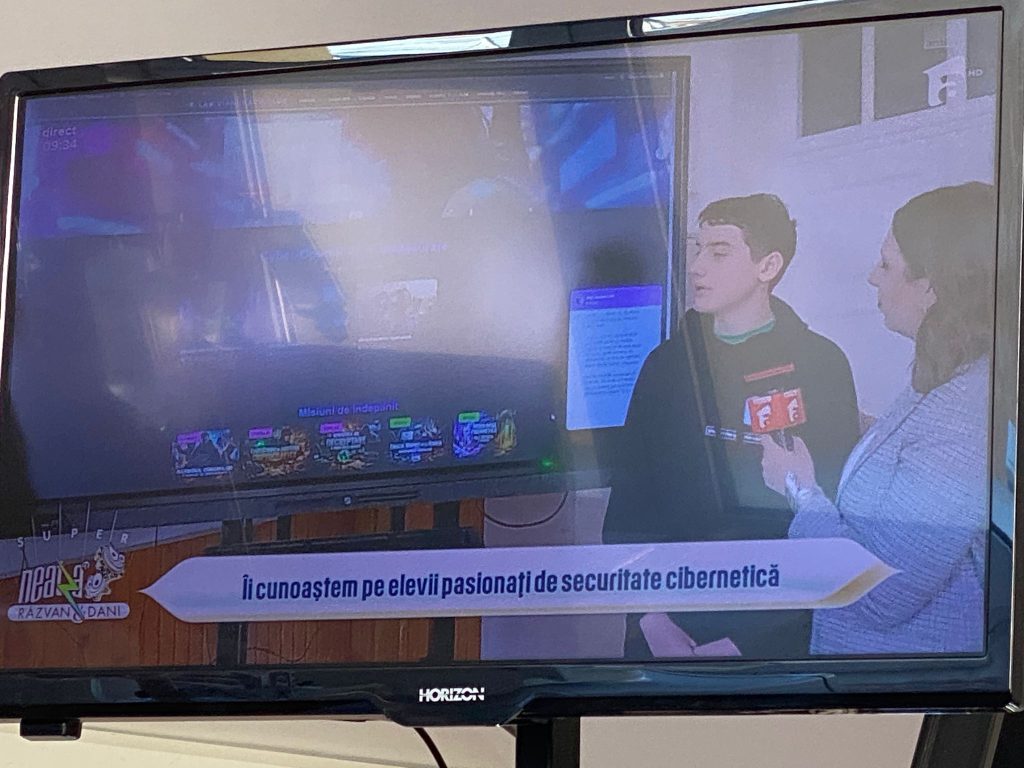 Yesterday morning, at CNI Tudor Vianu, in the classroom where we keep the Vianu Cybersecurity Club, we were interviewd live by Antena 1 TV during Razvan si Dani show.